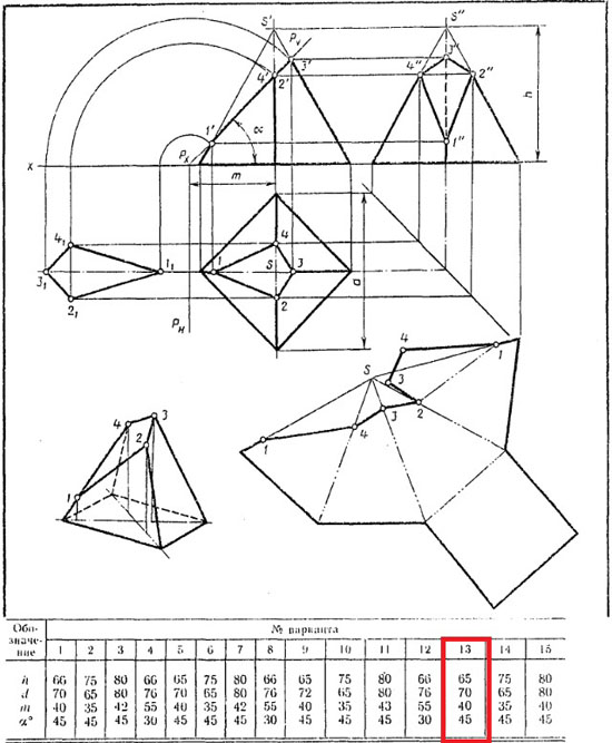 | Усеченная пирамида. Вариант 13 ЧЕРТЕЖ