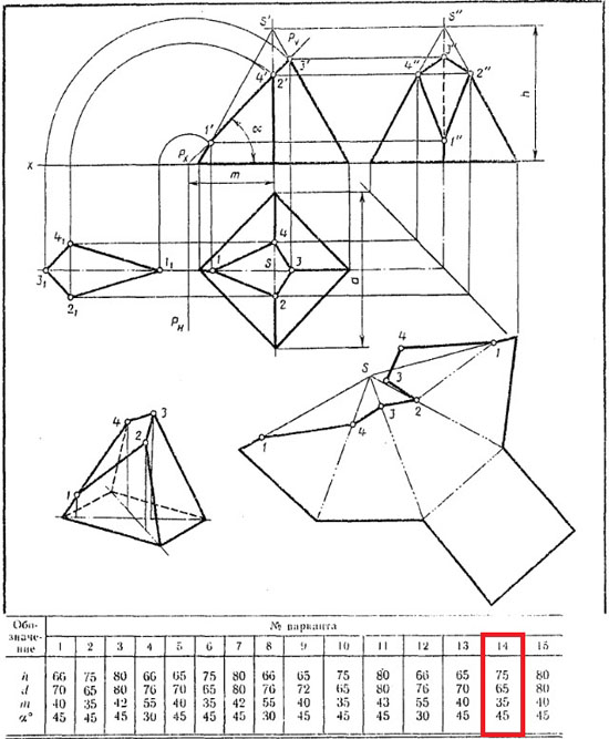 | Усеченная пирамида. Вариант 14 ЧЕРТЕЖ
