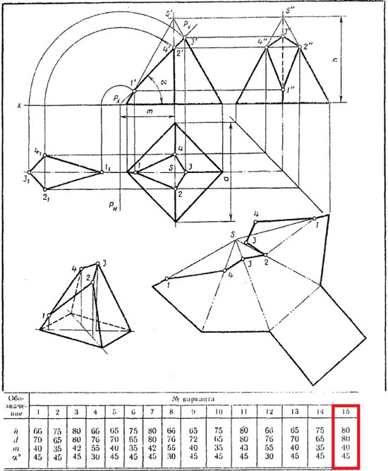 | Усеченная пирамида. Вариант 15 ЧЕРТЕЖ