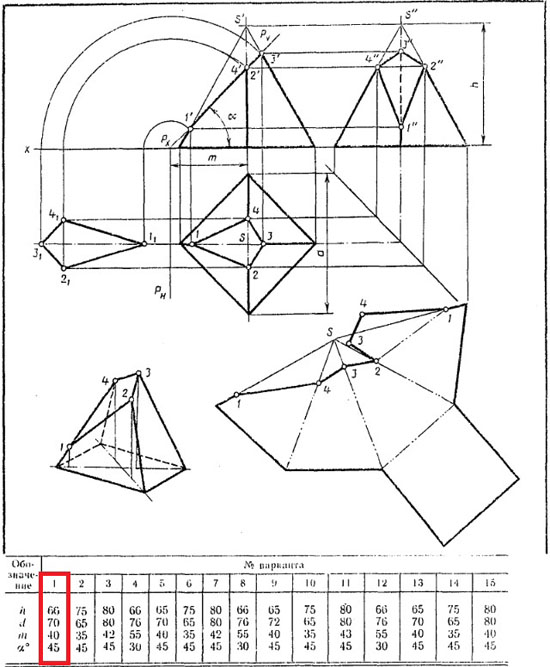 | Усеченная пирамида. Вариант 4 ЧЕРТЕЖ