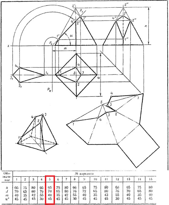 | Усеченная пирамида. Вариант 5 ЧЕРТЕЖ