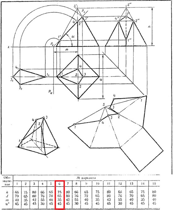 | Усеченная пирамида. Вариант 6 ЧЕРТЕЖ