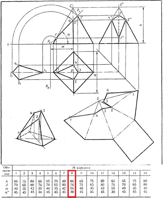 | Усеченная пирамида. Вариант 8 ЧЕРТЕЖ