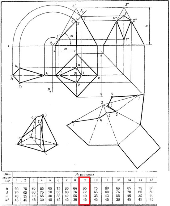 | Усеченная пирамида. Вариант 9 ЧЕРТЕЖ